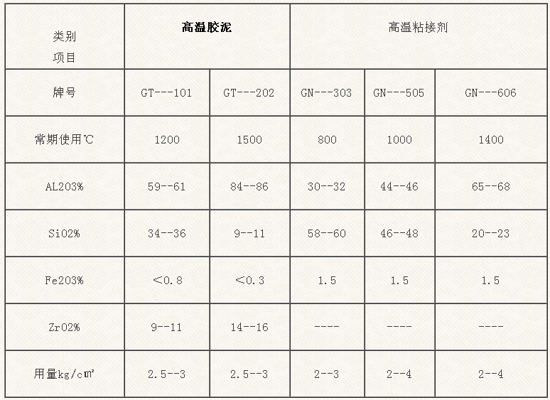 高溫膠泥主要用于纖維爐襯的表面涂層,其功能:一是保護纖維及制品表面,增強高溫火焰和氣流的沖刷,提高爐襯壽命。二是提高纖維及制品的絕熱效果。三是涂層熱輻射率大大高于纖維制品,提高了內襯的輻射傳熱效率,更好的發揮纖維制品的隔熱效果。高溫粘接劑是為纖維內襯鋪貼用的連接材料。