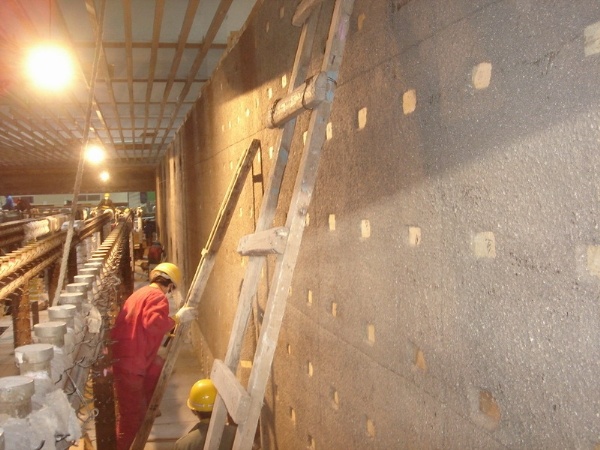 加熱爐的烘爐過程主要是加熱爐澆注料爐襯中水分的析出過程及加熱爐澆注料本身的高溫?zé)Y(jié)過程。水分不斷的從加熱爐澆注料澆注的爐墻、爐頂中沿梯度析出,其實(shí)質(zhì)就是水在加熱爐澆注料表而受熱汽化,內(nèi)部水分不斷向加熱爐澆注料表而補(bǔ)充再蒸發(fā)的過程。加熱爐澆注料是經(jīng)過澆注、振搗施工,其透氣性很差,若蒸發(fā)速度過快,內(nèi)部水分不能及時(shí)逸出,使?jié)沧⒘蟽?nèi)部的張力增大,一旦張力超過尚未燒結(jié)的澆注料的抗壓強(qiáng)度,就會(huì)使?fàn)t墻、爐頂?shù)臐沧⒘媳鸦騽兟洹?/p>