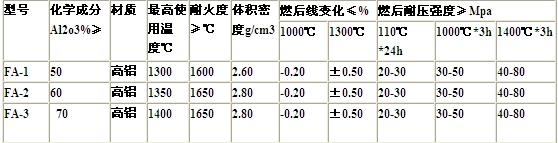 FAC系列微膨脹高鋁澆注料特性、用途: