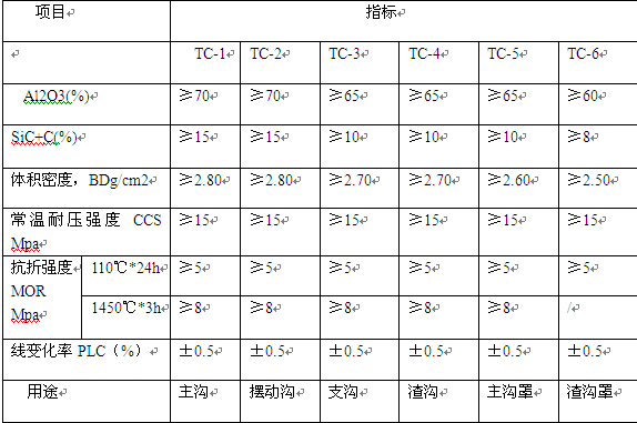 解答出鐵溝澆注料物理指標(biāo)